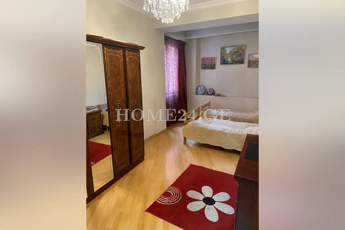 (Auto Translate!) For sale, a very good and bright 4-room apartment with a garage for 2 cars (the apartment is 136 sq.m and the garage is 40 sq.m), in the best location in Paliashvili, Vake, near the round garden, the garage is with bathrooms, which can be used as a commercial space, the apartment is on the 3rd floor, with 3 bedrooms, Good repair, balcony, two bathrooms, large entrance hall.