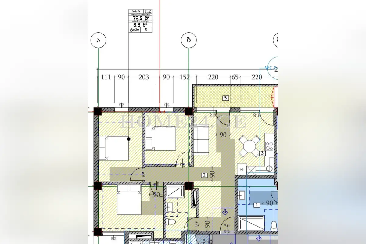 (Auto Translate!) White frame for sale. Didi Digomi, at the intersection of Ioane Petritsi and Petre Iberi streets, 4-room apartment with three bedrooms. 88 sq.m., 11/12,