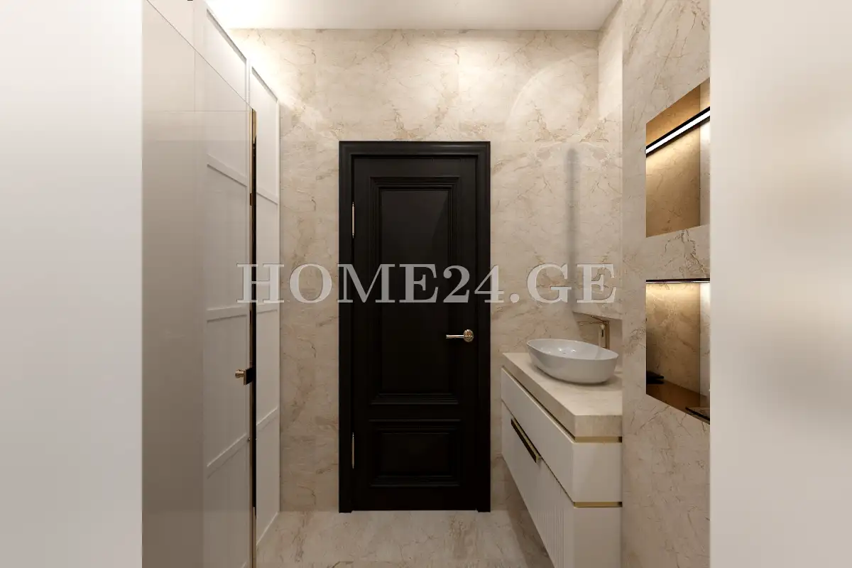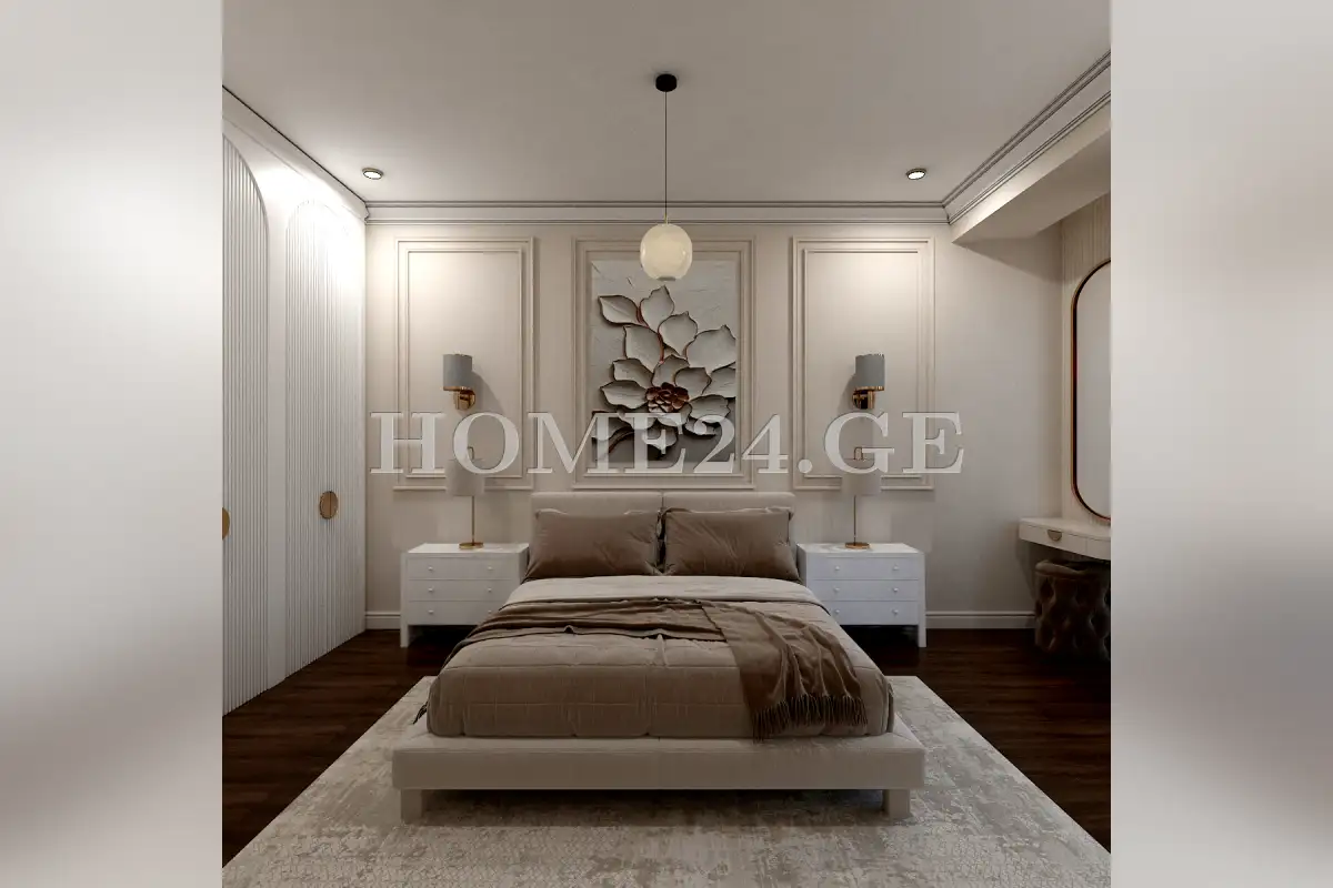 В квартире есть очень хороший вид с балкона, проект также включает в себя бассейн, детское пространство, ходьбы и спортивные/велосипеды, футбольные и теннисные квадраты, сад, дендрологический парк, а комплекс находится рядом с старой туристической зоной Тбилиси (ботанический сад и Нарикала).