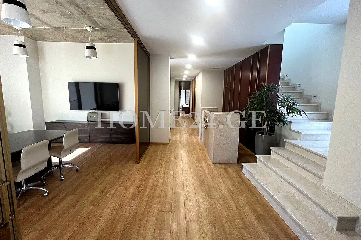 (Авто перевод!) Продается уникальный офис в престижном здании в Ваке, с качественным ремонтом и мебелью, 2 гаражами, большой верандой и прекрасным видом, в цену не включен НДС.