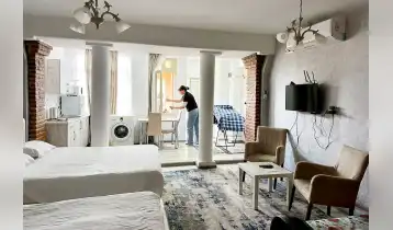 (Авто перевод!) Продается помещение гостиничного типа в районе площади Европы, помещение состоит из 5 однокомнатных полностью меблированных квартир и 37 кв.м. Коммерческое помещение на 1 этаже, в стоимость не включен НДС.